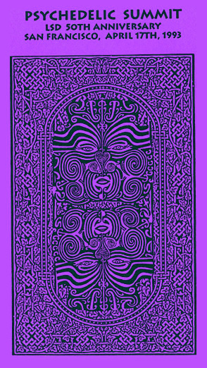 ![]() 50th Anniversary of LSD: The Complete Set And a good time was had by all and one. A weekend of events celebrating the 50th anniversary of Albert Hofmanns discovery of LSD. Sponsored by Multidisciplinary Association for Psychedelic Studies (MAPS) and California National Organization for the Reform of Marijuana Laws (NORML) to benefit psychedelic and marijuana research. The event was preceeded at a dinner Friday night, April 16, 1993 in Santa Cruz. Psychedelics & Cannabis, an all day exposition, was held at the Unitarian Church in San Francisco on Saturday, April 17, 1993. The celebration continued in Golden Gate Park Sunday afternoon and climaxed with the RAVE Sunday night, April 18, 1993 (see V471f-93). An excellent conpilation is found in a 2 hour video, (V471i-93)